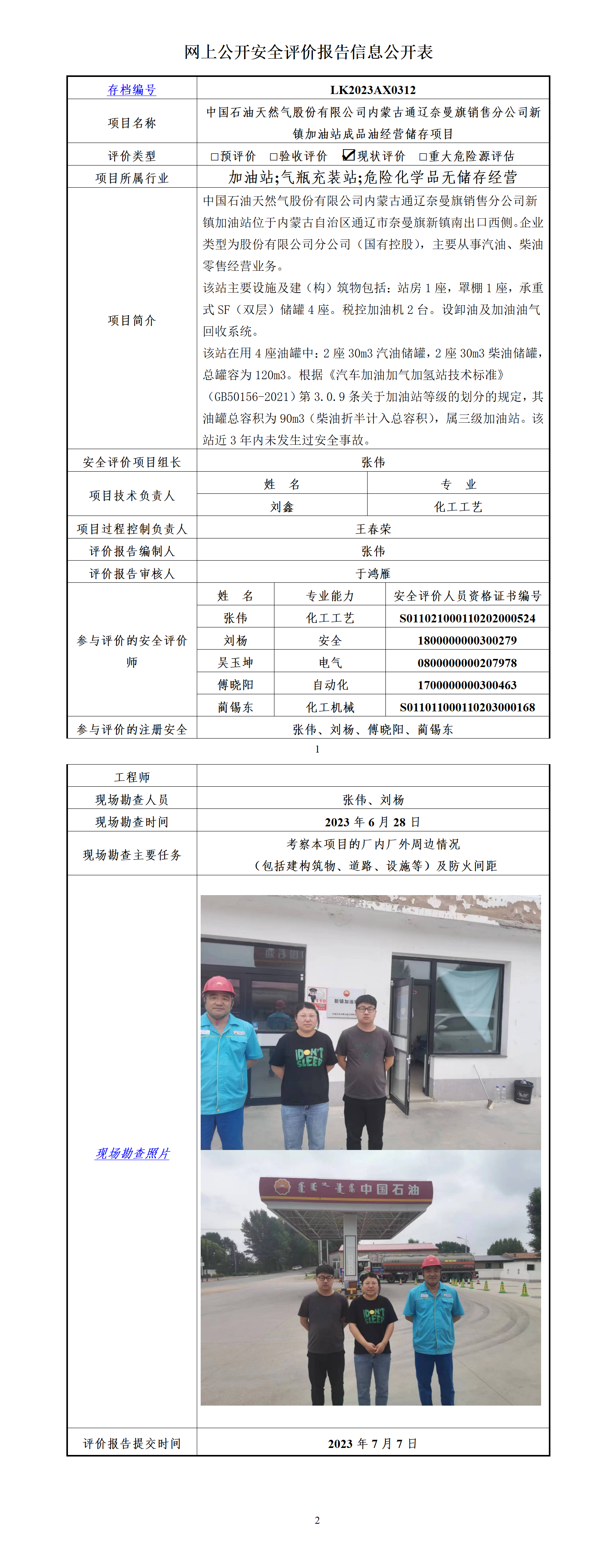 中国石油天然气股份有限公司内蒙古通辽奈曼旗销售分公司新镇加油站成品油经营储存项目